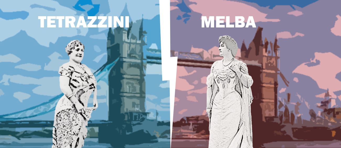 Луиза Тетраццини была одной из великих звезд оперного мира начала ХХ века. Она была одаренным колоратурным сопрано и великой соперницей Нелли Мельбы. В 1907 году она неожиданно дебютировала в Ковент-Гардене, что застало ее австралийскую соперницу врасплох. Нелли Мельба насмехалась над своей полнотелой соперницей на вечеринке, встав на четвереньки и показав, как лошадь в “Гугенотах” должна бороться, чтобы нести Луизу Тетраццини.