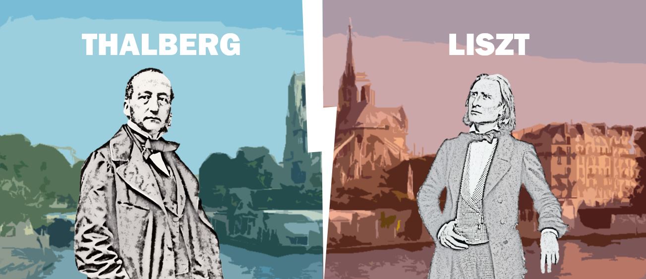 В Париже произошла дуэль знаменитого пианиста Листа с другим “фортепианным богом” Сигизмундом Тальбергом. В легендарном “поединке” в салоне княгини Бельжожозо на улице Анжу 23 (ныне не существует) она вынесла вердикт: “Thalberg est le premier pianiste du monde, Liszt, lui, est le seul”. (Тальберг – первый пианист в мире, Лист – единственный).