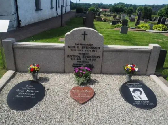She died in 2005 and was buried in the cemetery of her birthplace, Västra Karup, next to her parents.