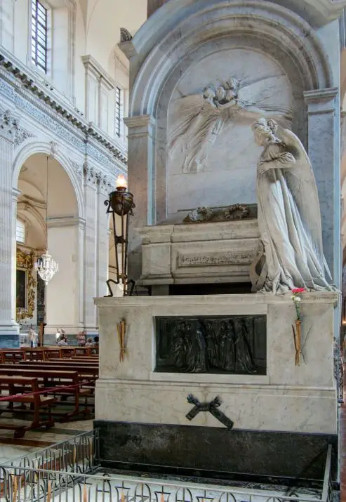 Chopin’s heart is immured in the columns of this church. The journey there was adventurous, his sister had rushed to his deathbed in Paris and learned from her brother his wish that his body should return to Poland. This was not possible due to the political situation and the friends decided that she should smuggle the heart preserved in cognac to Warsaw, where it was first stored in her apartment. Her baptismal church then accepted the heart, but stored it in the church basement because church officials did not believe Chopin was living a pious life in Paris. It was not until 40 years later that it found its way into the church, in a place of honor with a marble monument on the columned wall. The heart was to be taken out two more times, the first time when, with the help of a German priest, it was brought to safety during World War II before the church was blown up, and the second time in 2014 after the church was rebuilt when it was medically examined and the cause of death was recorded as pericarditis, which had its basis in his tuberculosis.