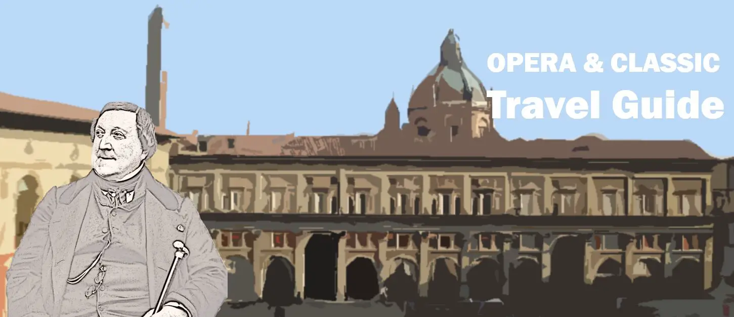 Firenze offrì a Rossini un certo periodo di tempo come rifugio dopo il suo travagliato periodo a Bologna, ma per il resto non ebbe un ruolo importante nella sua biografia. Tuttavia, per ragioni di propaganda, il giovane stato italiano volle riportare il famoso figlio a casa 20 anni dopo la sua morte, e il suo corpo fu trasferito dal cimitero di Père Lachaise a Parigi a Firenze. Da allora riposa nella chiesa di Santa Croce, il Partenone italiano, dove riposano anche i famosi Machiavelli, Michelangelo, Galileo e molti altri. Si dice che Francesco d’Assisi abbia posto la prima pietra di questa chiesa.
